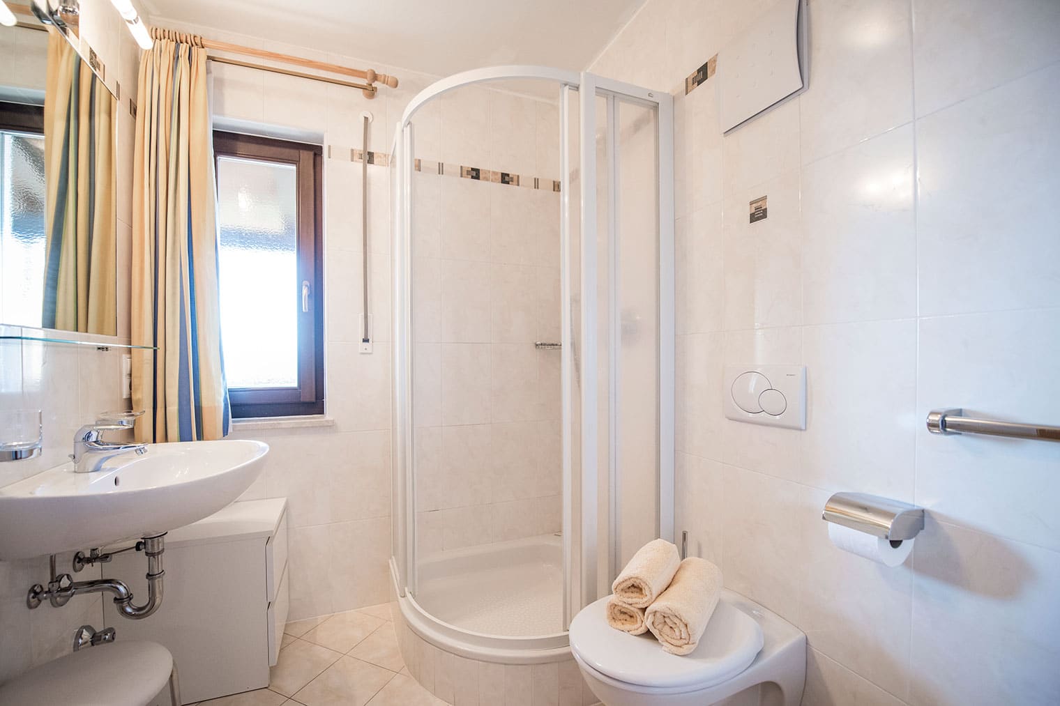 - Das Badezimmer ist mit Dusche, WC sowie Handtüchern, Föhn und Pflegeprodukten ausgestattet.